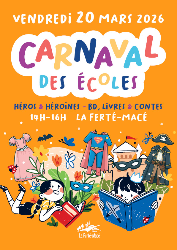 La ville de La Ferté-Macé organise son Carnaval des écoles le vendredi 20 mars 2026, de 13h45 à 15h45, réunissant 22 classes autour du thème : Héros et héroïnes de bandes dessinées, de livres et de contes. Petits et grands défileront costumés, incarnant leurs personnages favoris issus de la littérature jeunesse et de l’univers de la BD.