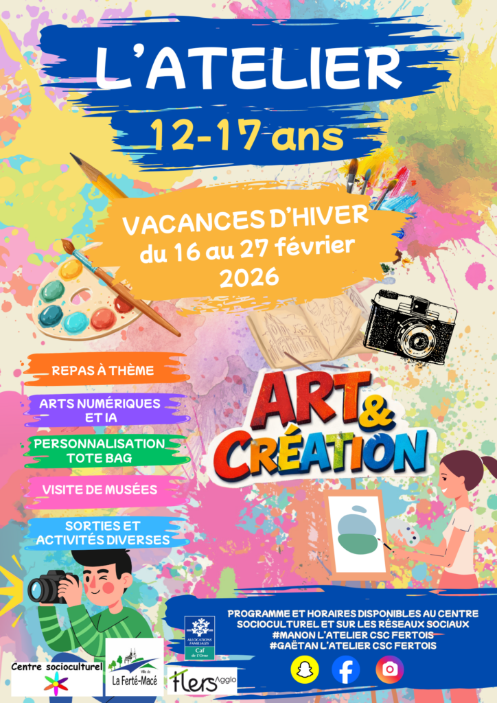 « Tous les Évènements Série d'événement : Vacances d’hiver : 12-17 ans (16-27/02) Vacances d’hiver : 12-17 ans (16-27/02) 23 février « Vacances d’hiver : 6-11 ans (16-27/02) Don de sang » A l’atelier 12-17 ans, rue St Denis Ajouter au calendrier Google Agenda iCalendar Outlook 365 Outlook Live Détails Date : 23 février Série : Vacances d’hiver : 12-17 ans (16-27/02) Catégories d’Évènement: Atelier, Loisirs, Sports et Loisirs Évènement Tags:Agenda Organisateur Centre Socioculturel Thérèse Letinturier Téléphone 02 33 14 14 83 E-mail centresocioculturel@lafertemace.fr Lieu l’Atelier (12-17 ans) 16 rue St Denis La Ferté-Macé, 61600 France + Google Map Évènements liés Ateliers tricot, couture et crochet 3 février - 14 h 00 à 16 h 30 Saison culturelle, Mentir Io Minimo 3 février - 20 h 30 Crêpe party 5 février - 14 h 30