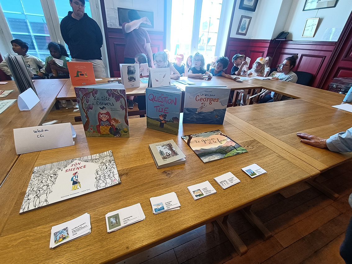 - Et une sélection CE1 pour les 6-11 ans comprenant 5 albums et 1 roman (Le son du silence de Katerina Goldsaito, La question qui tue de jean Leroy, La tête à l’envers de Didier Dufresne, Le garçon et le faon de Louise Greig, L’étoile de Mo d’Yeonju Choi et Un ami pour Georges de Gabriel Evans).