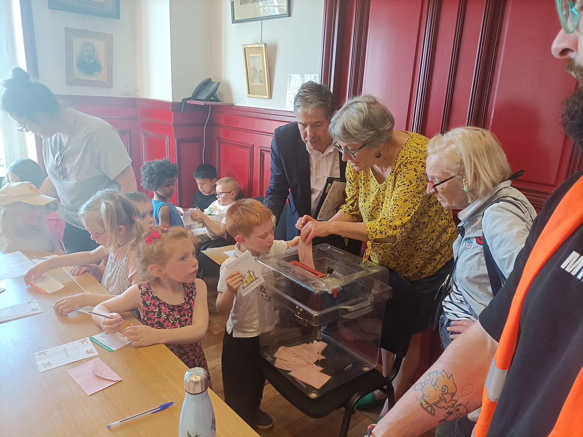 Cette action immersive plonge les jeunes votants dans des conditions proches d’un véritable vote citoyen (avec isoloirs, urne, enveloppes, carte d’identité, dépouillement, etc…). Cette démarche leur permet de découvrir concrètement le fonctionnement du vote, le respect des règles et le rôle du citoyen.