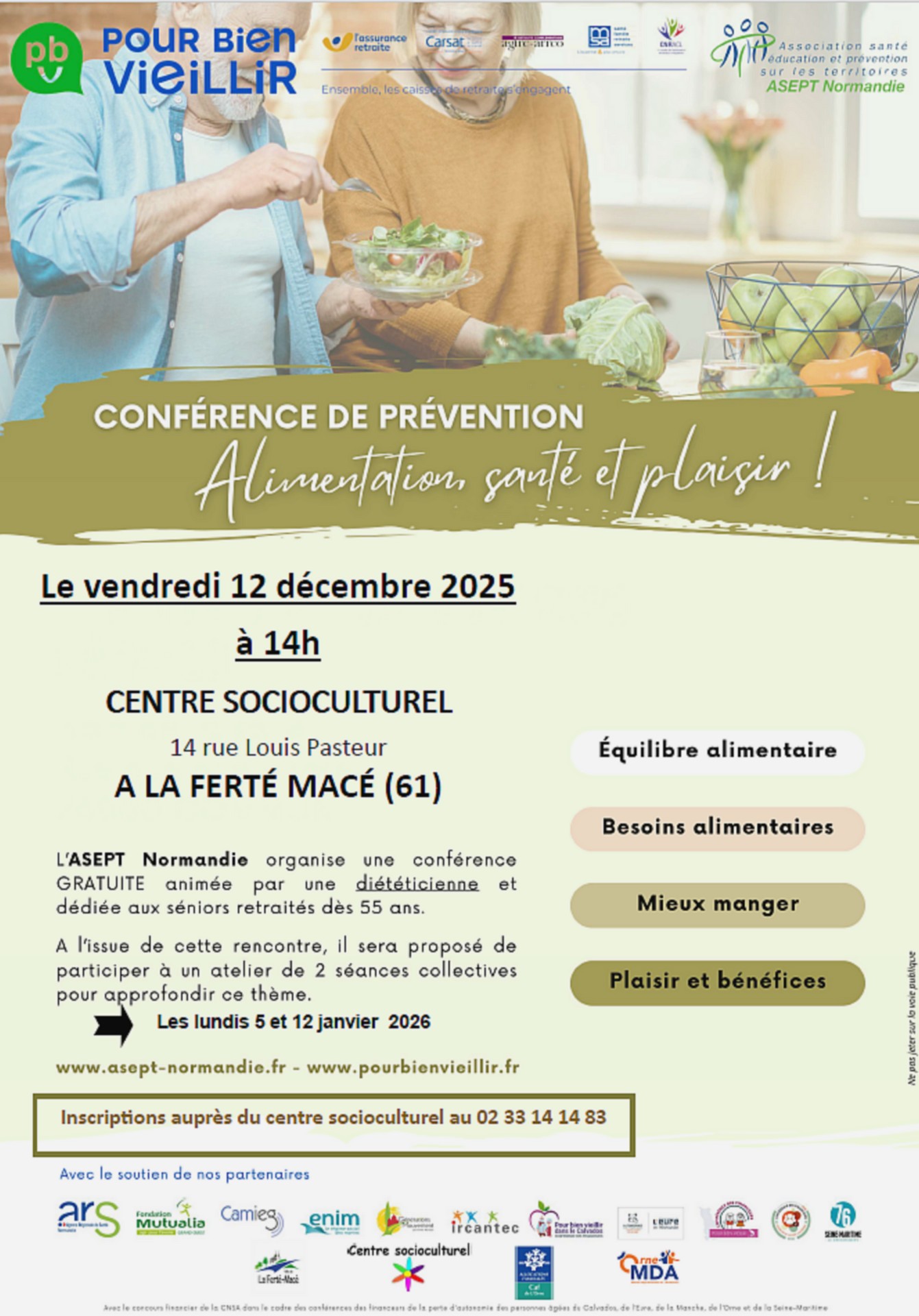 « Tous les Évènements Série d'événement : ASEPT – Conférence Alimentation santé et plaisir ASEPT – Conférence Alimentation santé et plaisir 12 décembre - 14 h 00 « Seniors : Code de la route, testez vos connaissances Soirée jeux » Ajouter au calendrier Google Agenda iCalendar Outlook 365 Outlook Live Détails Date : 12 décembre Heure : 14 h 00 Série : ASEPT – Conférence Alimentation santé et plaisir Catégories d’Évènement: Loisirs, Santé - Social Évènement Tags:Agenda Lieu Centre Socioculturel Thérèse Letinturier 14 Rue Pasteur La Ferté-Macé, 61600 + Google Map Évènements liés Soirée jeux 5 décembre - 20 h 00 à 22 h 00 Musée du jouet (décembre) 6 décembre UCIA – Opération de Noël 6 décembre