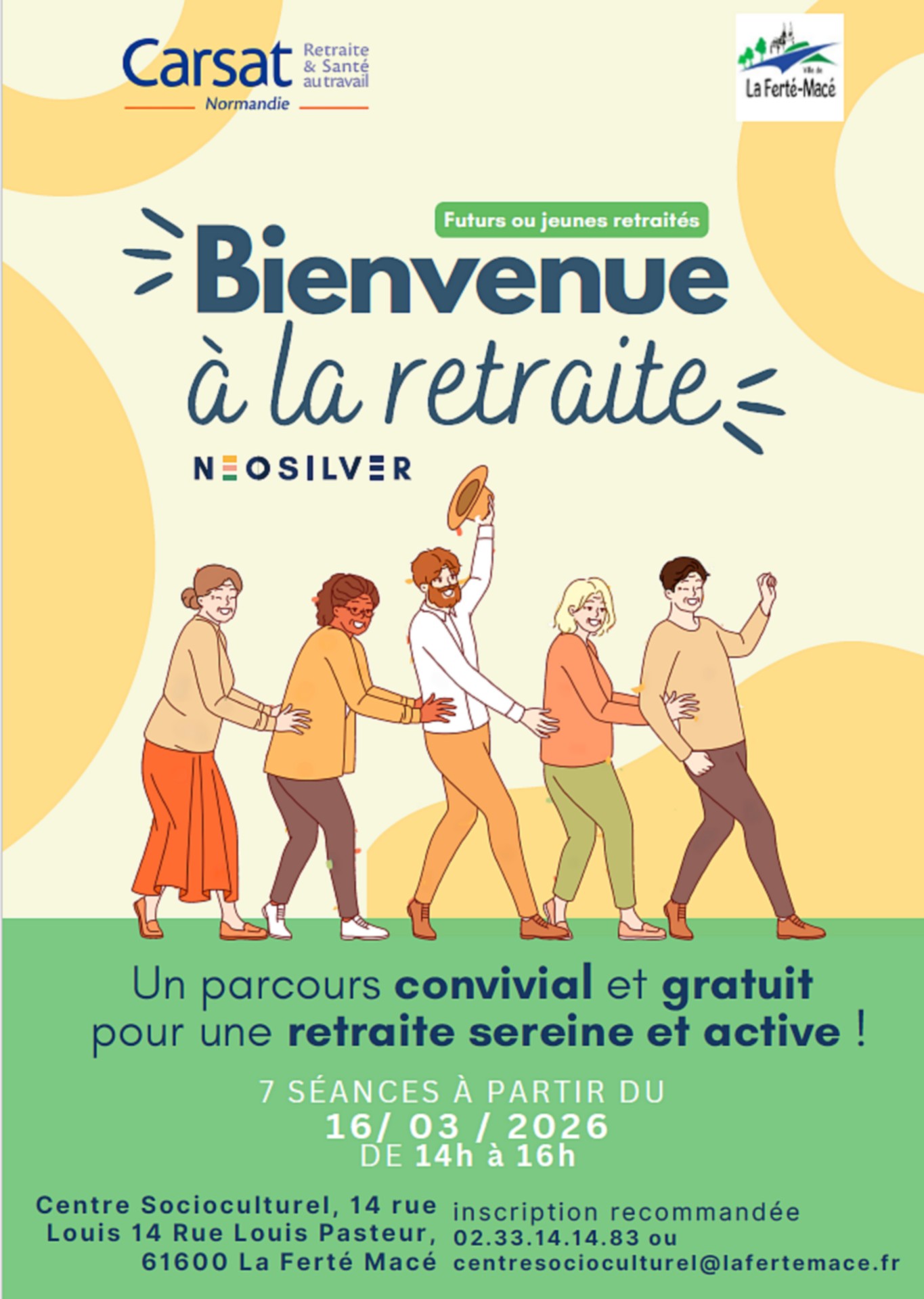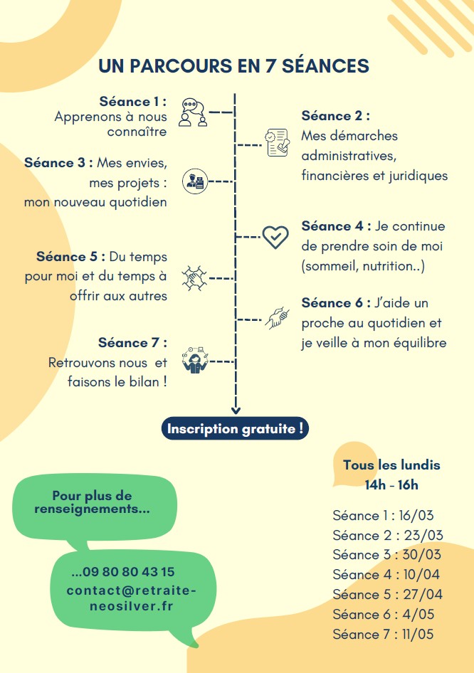 « Tous les Évènements Série d'événement : Ateliers retraite Ateliers retraite 27 avril à 22 juin « Marché aux fleurs Saison culturelle : Epidermis Circus » Ateliers retraite proposés par CARSAT Normandie Ajouter au calendrier Google Agenda iCalendar Outlook 365 Outlook Live Détails Début : 27 avril Fin : 22 juin Série : Ateliers retraite Catégorie d’Évènement: Santé - Social Évènement Tags:Agenda Lieu Centre Socioculturel Thérèse Letinturier 14 Rue Pasteur La Ferté-Macé, 61600 + Google Map Évènements liés Ateliers Bien vieillir 3 mars - 8 h 00 à 17 h 00 Ateliers Bien vieillir 3 mars - 14 h 00 à 16 h 00 Préparation Carnaval 4 mars - 15 h 00