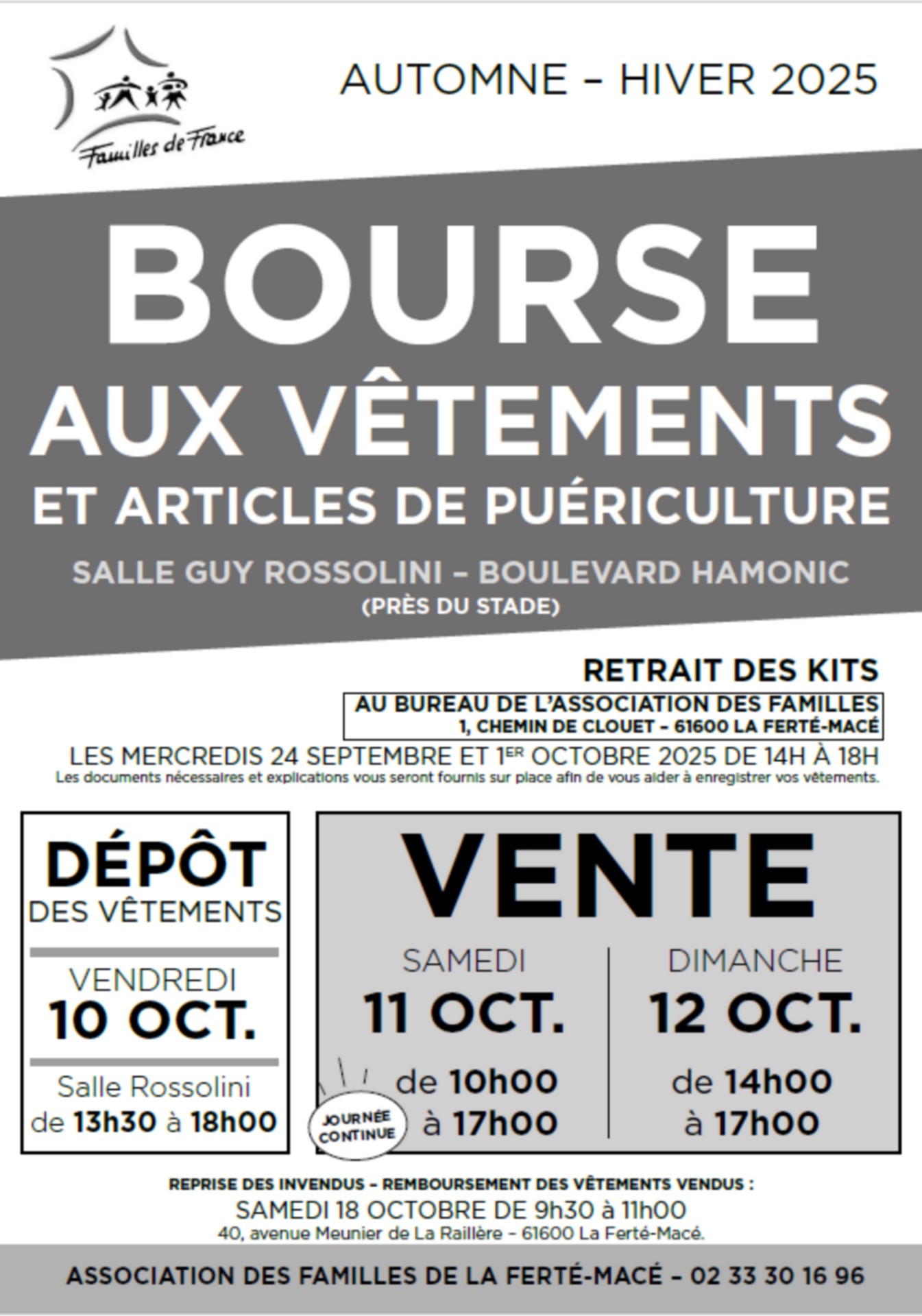 « Tous les Évènements Cet évènement est passé. Série d'événement : Bourse aux vêtements Bourse aux vêtements 8 novembre à 9 novembre « Soirée jeux Spectacle : La Papesse Jeanne » Bourse aux vêtements 11 et 12 octobre 2025 Ajouter au calendrier Google Agenda iCalendar Outlook 365 Outlook Live Détails Début : 8 novembre Fin : 9 novembre Série : Bourse aux vêtements Catégories d’Évènement: Marché - Braderie, Santé - Social Évènement Tags:Agenda Organisateur Association des Familles Téléphone 02 33 30 16 96 Lieu Salle Guy Rossolini Bd Hamonic La Ferté-Macé, 61600 + Google Map Évènements liés Soirée jeux 5 décembre - 20 h 00 à 22 h 00 Musée du jouet (décembre) 6 décembre UCIA – Opération de Noël 6 décembre