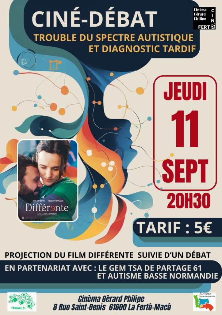 Soirée spéciale consacrée au Trouble du Spectre Autistique (TSA) et au diagnostic tardif, le jeudi 11 septembre 2025 à 20h30. Cet événement prendra la forme d’un ciné-débat : projection du film « Différente » suivie d’un temps d’échange avec le public.