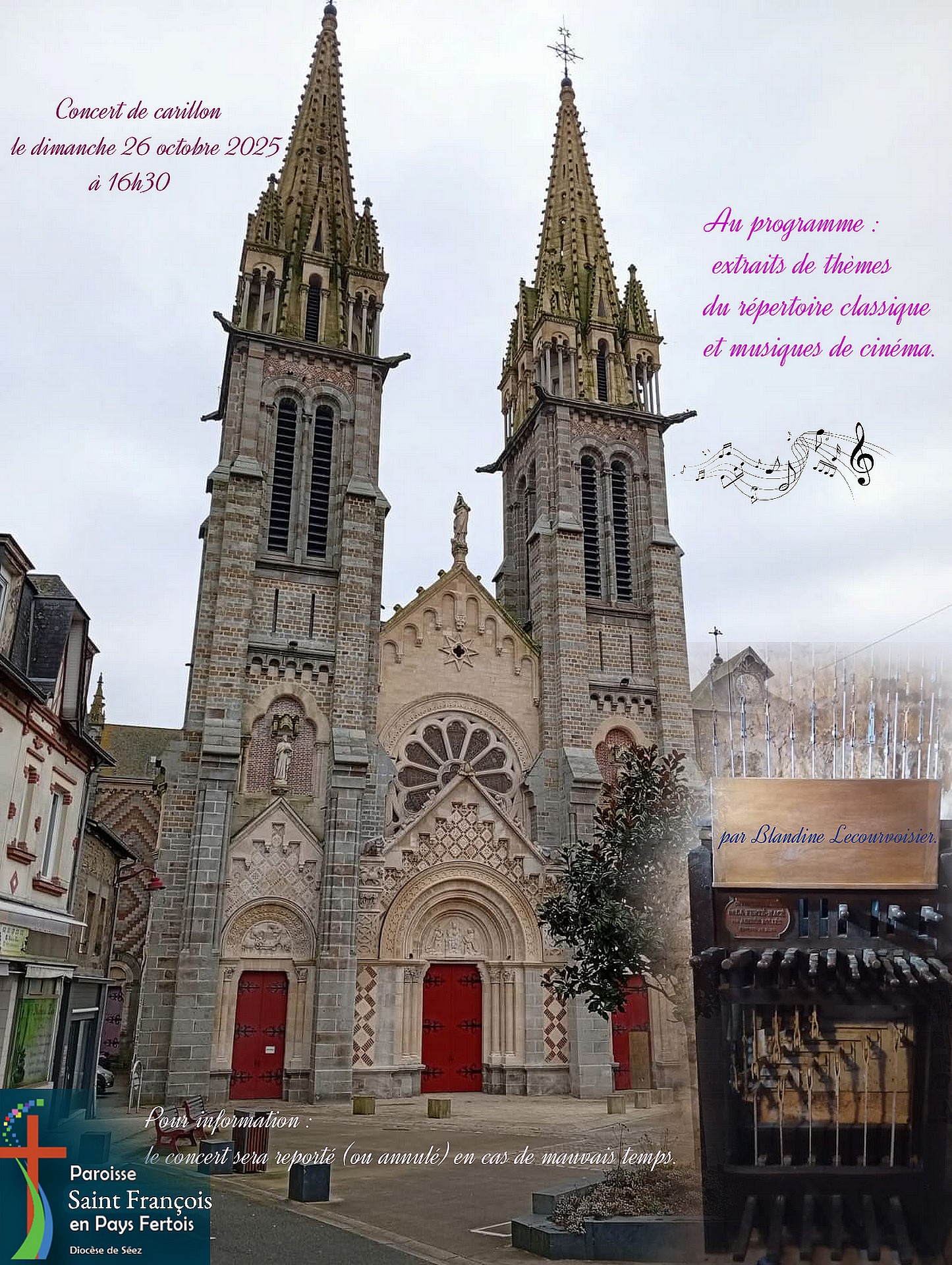 « Tous les Évènements Cet évènement est passé. Série d'événement : Concert de carillon Concert de carillon 26 octobre - 16 h 30 « Bourse aux vêtements 20-31/10 : Vacances d’automne (12-17 ans) » Dimanche 26 octobre à 16h30, en l’Eglise Notre-Dame Ajouter au calendrier Google Agenda iCalendar Outlook 365 Outlook Live Détails Date : 26 octobre Heure : 16 h 30 Série : Concert de carillon Catégories d’Évènement: Concert - Spectacle - Débat, Loisirs, Patrimoine, Sports et Loisirs Lieu Eglise Notre-Dame Place du Gal Leclerc La Ferté-Macé, 61600 + Google Map Évènements liés Soirée jeux 5 décembre - 20 h 00 à 22 h 00 Musée du jouet (décembre) 6 décembre UCIA – Opération de Noël 6 décembre