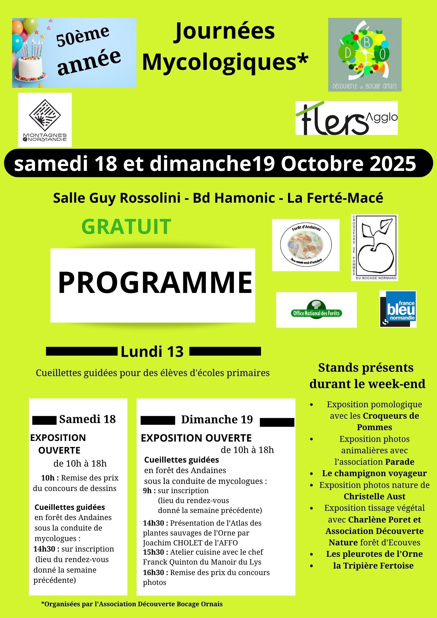 « Tous les Évènements Cet évènement est passé. Série d'événement : Journées mycologiques Journées mycologiques 18 octobre à 20 octobre « Soirée jeux Défi bonbon » 50ème édition des journées mycologiques, du 18 au 20 octobre 2025. Ajouter au calendrier Google Agenda iCalendar Outlook 365 Outlook Live Détails Début : 18 octobre Fin : 20 octobre Série : Journées mycologiques Catégories d’Évènement: Atelier, Expositions, Loisirs, Sports et Loisirs Évènement Tags:Agenda Organisateur Office de Tourisme Téléphone 02 33 37 10 97 Voir le site Organisateur Lieu Salle Guy Rossolini Bd Hamonic La Ferté-Macé, 61600 + Google Map Évènements liés Soirée jeux 5 décembre - 20 h 00 à 22 h 00 Musée du jouet (décembre) 6 décembre UCIA – Opération de Noël 6 décembre