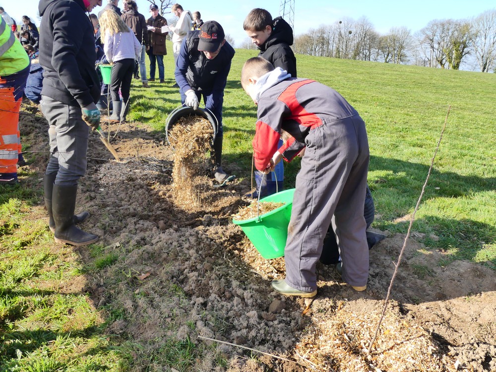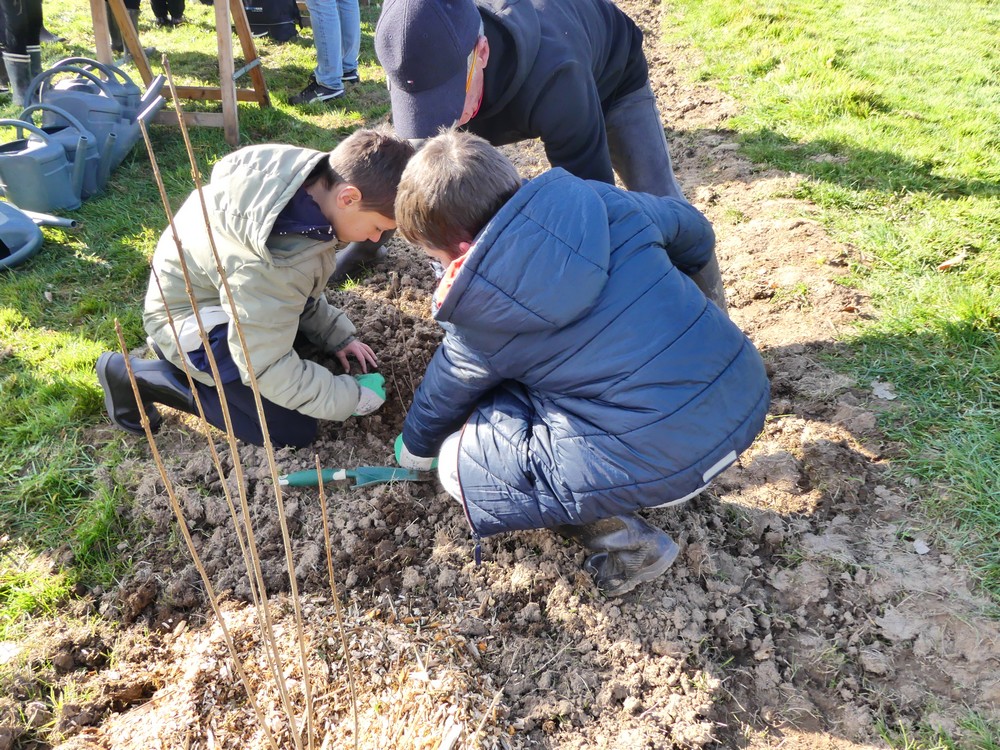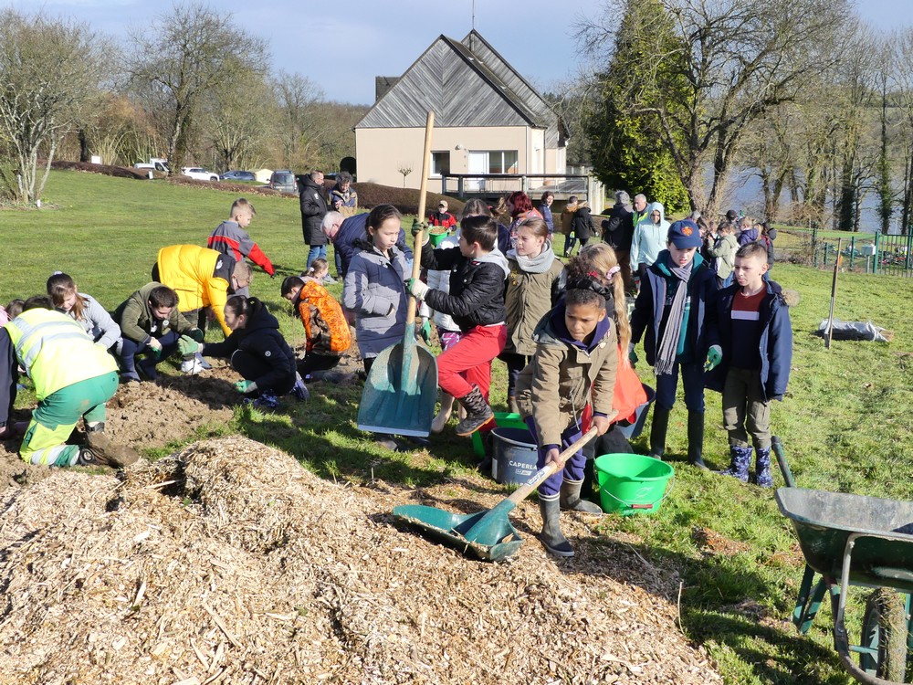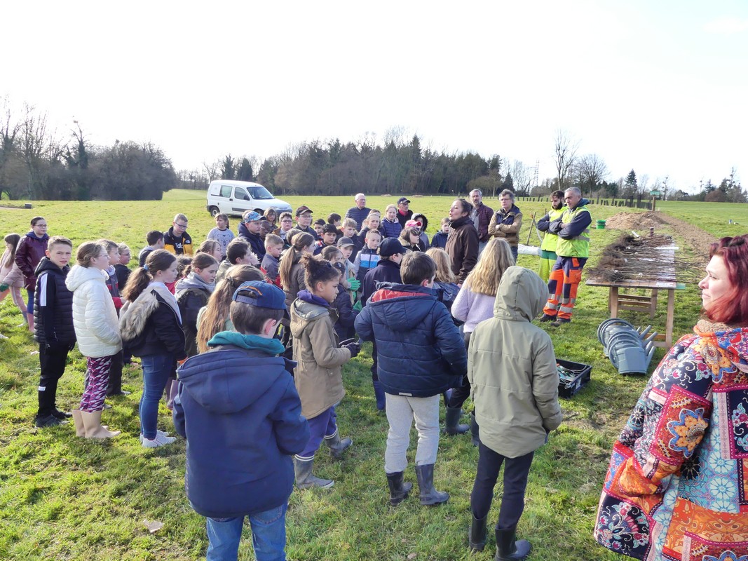 A l’initiative de ce projet, les classes de CM1 et CM2 de Stéphanie Duchemin et de Françoise Bisson ont planté 117 mètres de haie avec le soutien des services techniques de la ville et de l’Association SwinGolf (ASF). Chênes rouvres, érables champêtres, pommiers et bourdaines font partie des essences d’arbres financés par Flers Agglo qui permettront de renforcer la biodiversité sur cette partie du site de la Base de Loisirs. Outre les bénéfices pour la faune et la flore locales, cette plantation permet de faire du lien entre les acquis pédagogiques reçus en classes et les interventions sur le terrain pour sensibiliser les élèves à la préservation de leur environnement.