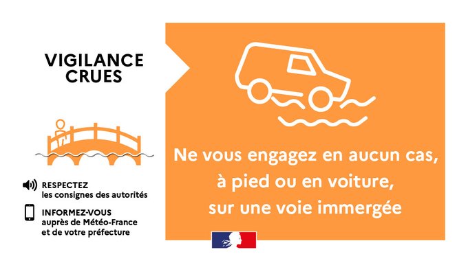 – l’Orne, la Risle, le Noireau et l’Huisne sont en vigilance jaune.